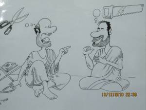 Let’s first examine the spirituality of the Residence. When we arrived to the Residence, I was amazed by the many posters posted on the walls in the Reception Area, elevators and in the Main Gathering Hall.  They deal with matters pertaining to the duty of Hajj, health tips, morals from the Prophet & His Family Members (Peace Be Upon Them) and some fundamental life principles.  Each poster is worthy of a separate blog entry; maybe I’ll expand them in future entries.  To examine examples of the posters, go to the end of this blog entry.  However, I can’t resist inserting this cartoon about the bad habit of backbiting!  It is so true.
